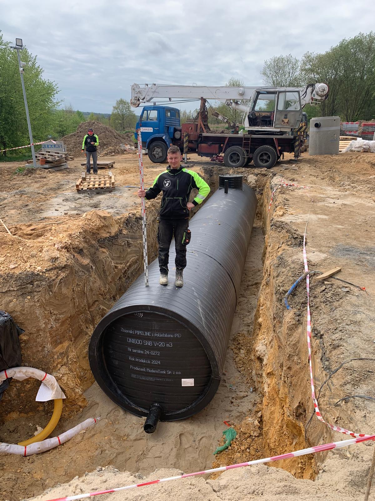 Budowa i modernizacja sieci kanalizacji sanitarnej i deszczowej. Montaż przepompowni ścieków, przyłącza wodociągowe i kanalizacyjne.