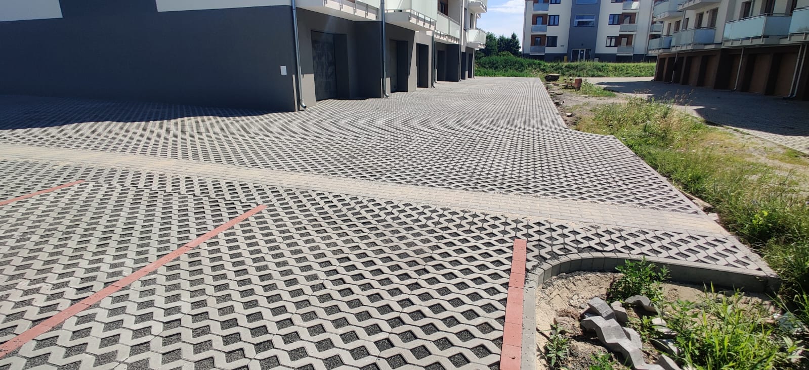Układanie kostki betonowej, granitowej i klinkierowej. Budowa podjazdów, chodników, tarasów, parkingów. Obrzeża, palisady, murki oporowe.